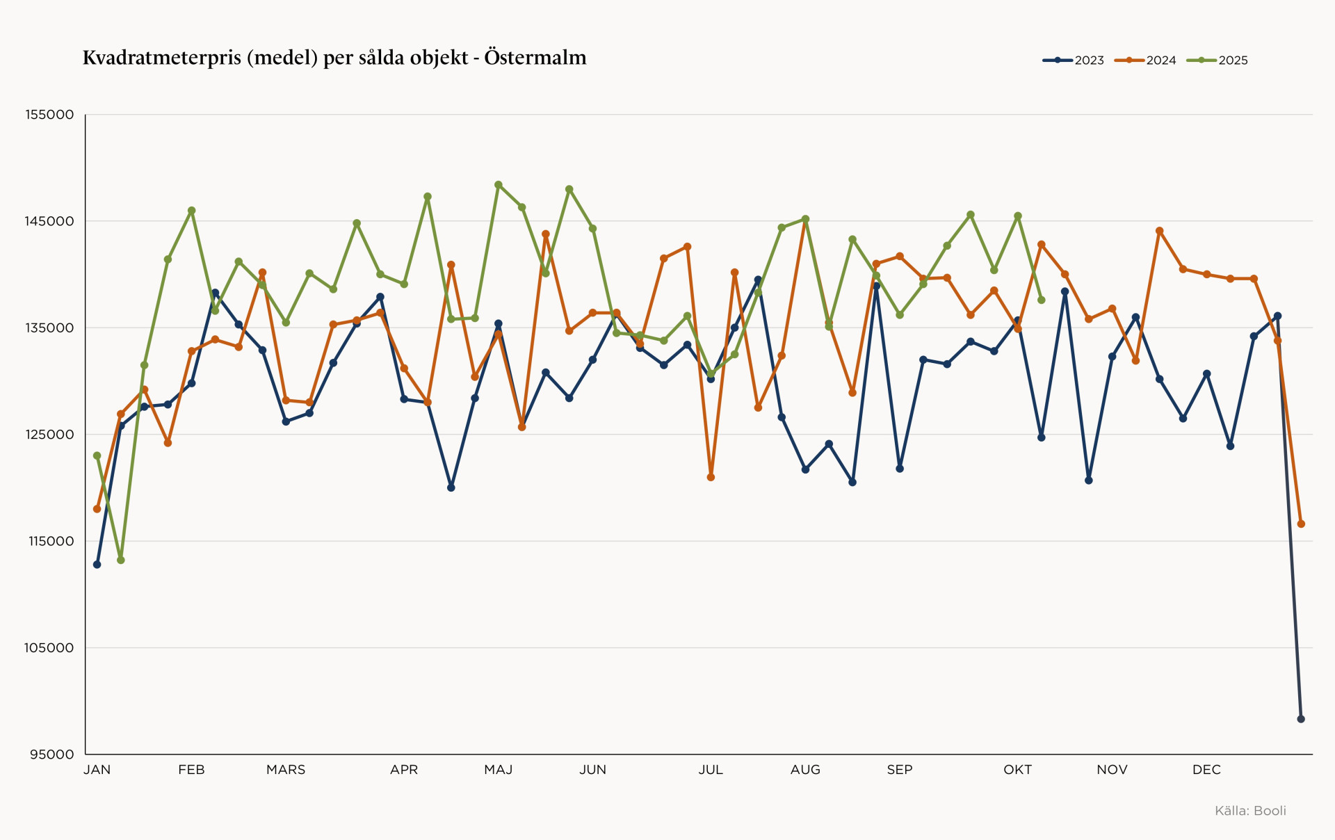 Nedan ser ni grafen för prisutvecklingen i Östermalm denna vecka.